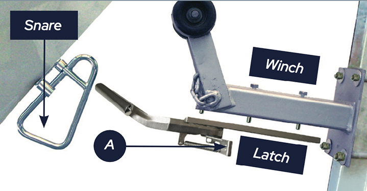 To check your alignment, release the winch. The bow of the boat needs to be in line with the base plate of the latch. If it’s not – then you’ll need to align the trailer rollers/slides.