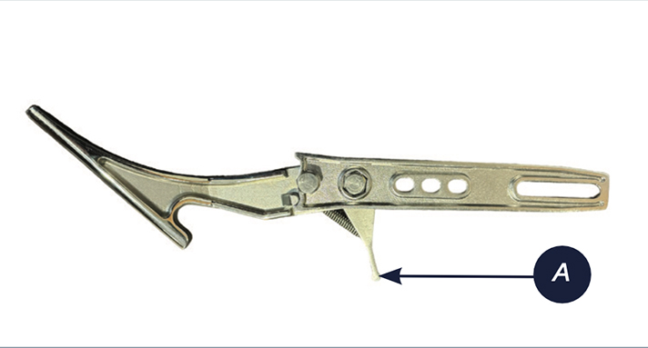 To achieve this, adjust [a], [b] and [c] so that the gap [f] between the snare and the bar on the latch equals 1 finger width (20mm or ¾”). The latch should move aside to give a finger spacing.