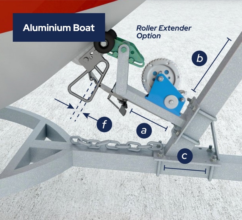 Used where the roller needs to be able to project out further to the bow. More commonly required on Towing Eye (Aluminium) boats. Endless variation of boats and trailers results in the inability to get the roller in the best position sometimes.